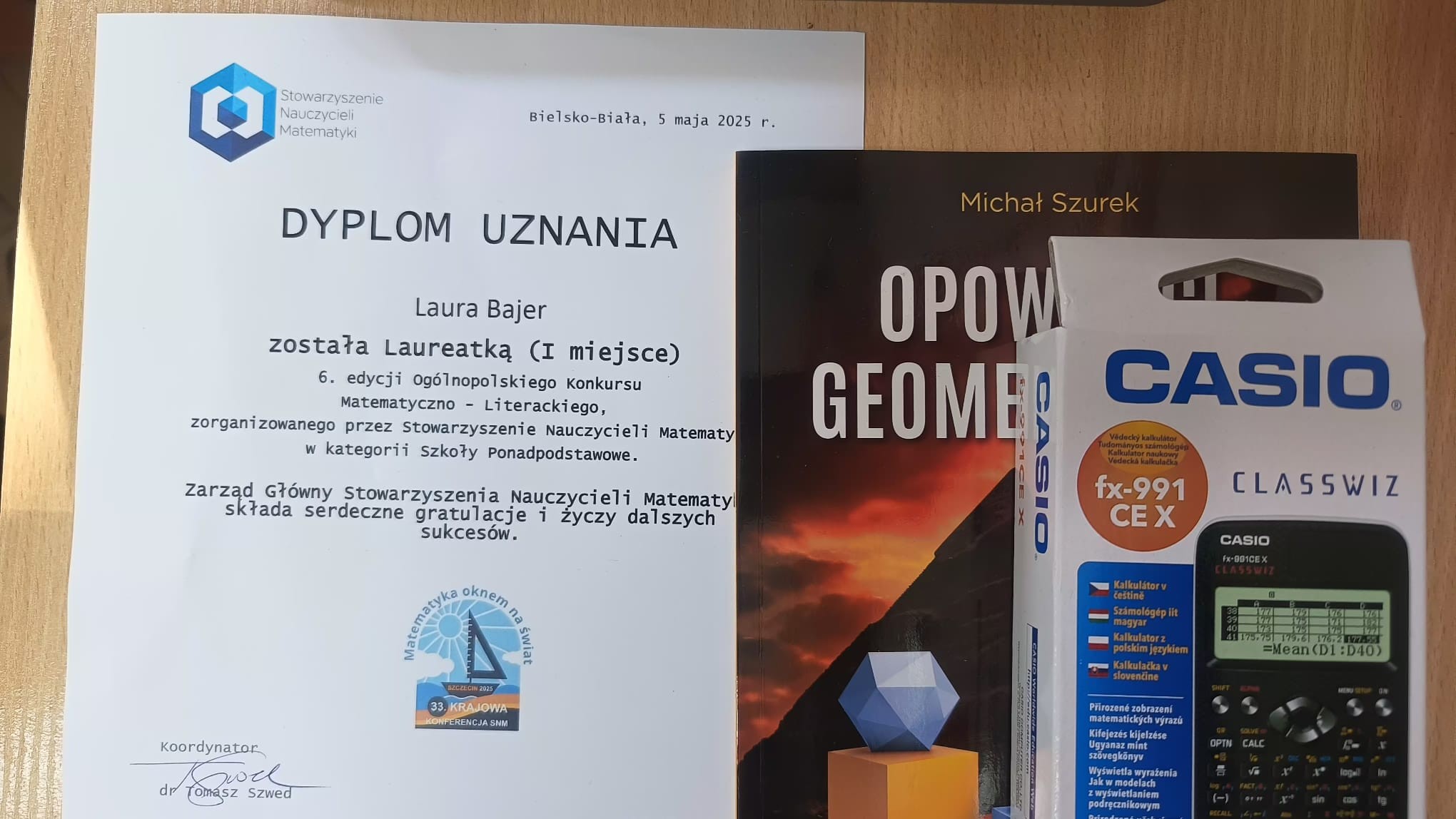 Laura Bajer z klasy I a została Laureatką (I miejsce) w 6 edycji Ogólnopolskiego Konkursu Matematyczno-Literackiego zorganizowanego przez Stowarzyszenie Nauczycieli Matematyki w kategorii Szkoły Ponadpodstawowe. Gratulujemy!