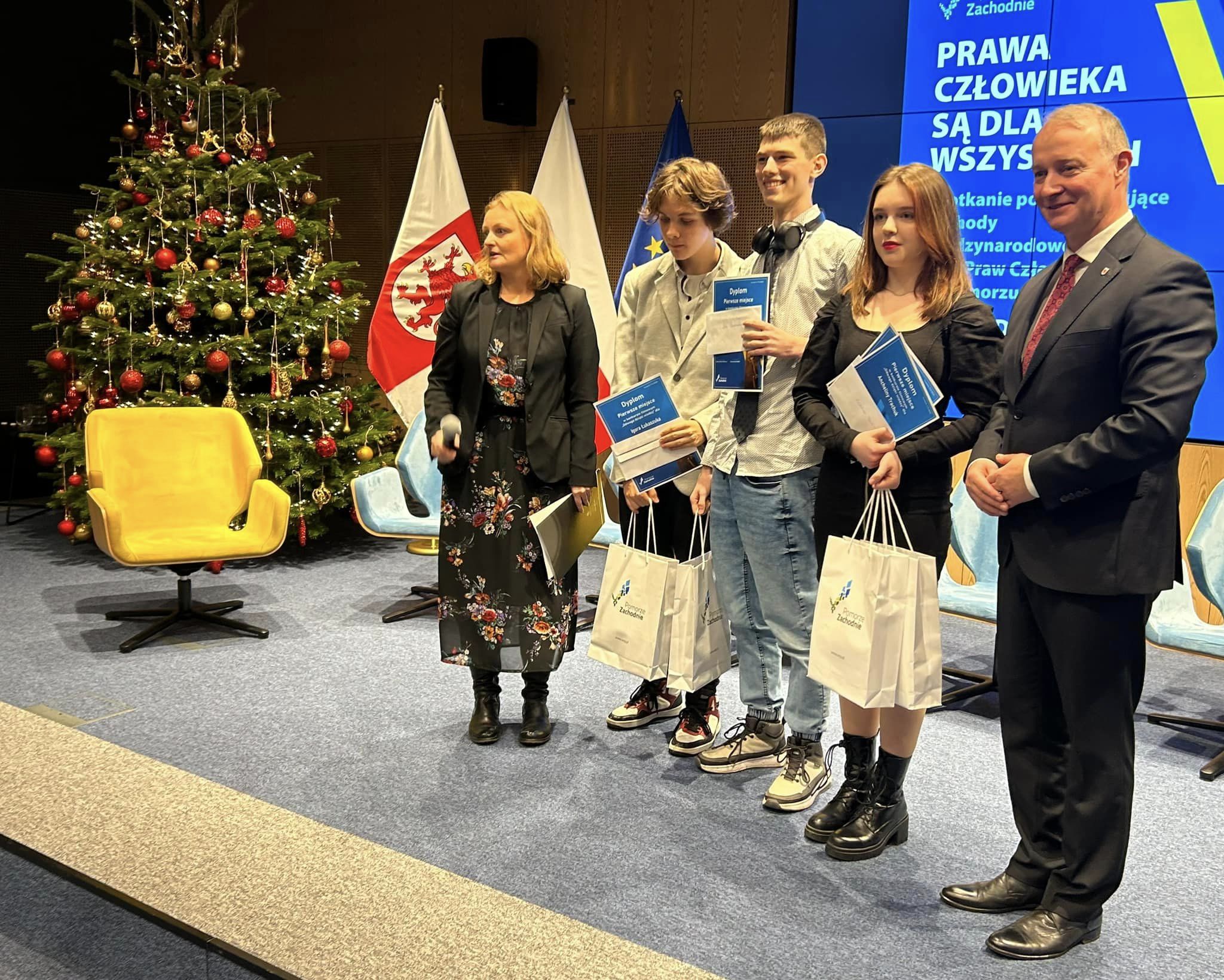 W Wojewódzkim Konkursie „Prawa człowieka - prawda czy fikcja” nasza młodzież zdobyła liczne nagrody: w kategorii film - uczniowie klasy 1 artystycznej - Anhelina Trachuk, Mila Mazur, Igor Łukaszuk i Ihor Shapovalov, zajęli 1 miejsce; w kategorii esej - uczennice klasy 4 artystycznej - Nadia Pacocha zajęła 3 lokatę , a Oliwia Kot zdobyła wyróżnienie. Gratulujemy sukcesów!