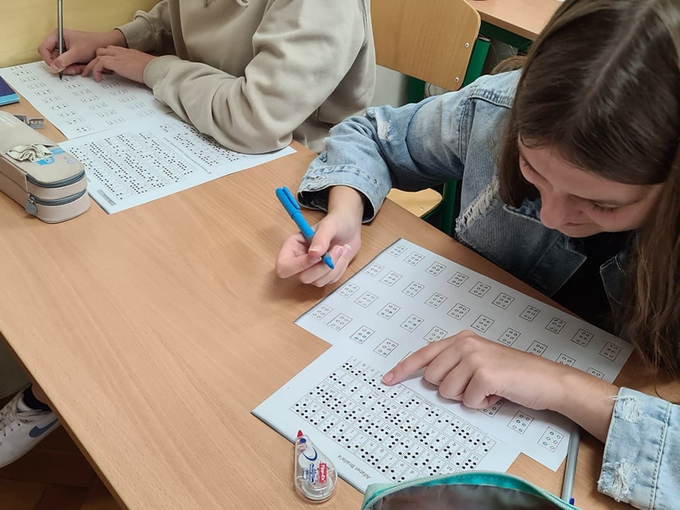 W związku z niedawno obchodzonym Dniem Białej Laski (15 października) wzięliśmy udział w kampanii społecznej „Ja nie widzę Ciebie, Ty zobacz mnie”. Poznawaliśmy Alfabet Braille’a, zasady zachowania w towarzystwie osoby niewidomej, podstawy orientacji przestrzennej, a także inspirujące historie osób niewidomych Sprawdziliśmy w jaki sposób „biała laska” ułatwia poruszanie się osobom niewidomym, a także zapoznaliśmy się z sześciopunktem. Odczytywaliśmy informacje, i sami tworzyliśmy krótkie wiadomości przy zastosowaniu Alfabetu Braille’a i użyciu tabliczek brajlowskich. W ramach podsumowania powstał list z życzeniami dla uczniów i pracowników Kujawsko-Pomorskiego Specjalnego Ośrodka Szkolno-Wychowawczy nr 1 dla Dzieci i Młodzieży Słabo Widzącej i Niewidomej im. L. Braille’a w Bydgoszczy, którzy są głównymi organizatorami akcji.
