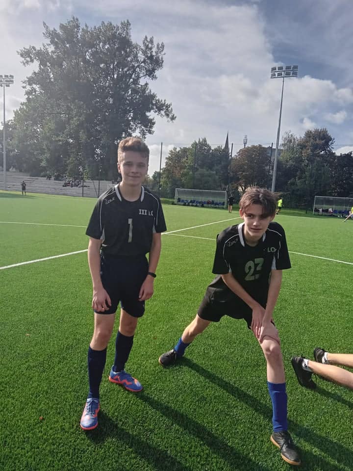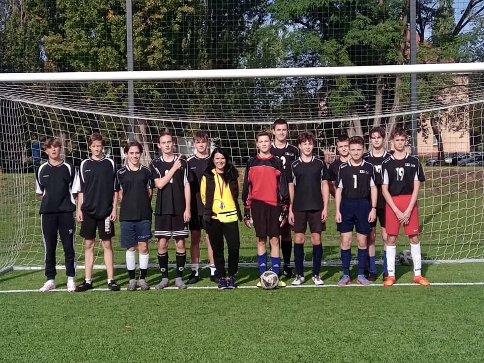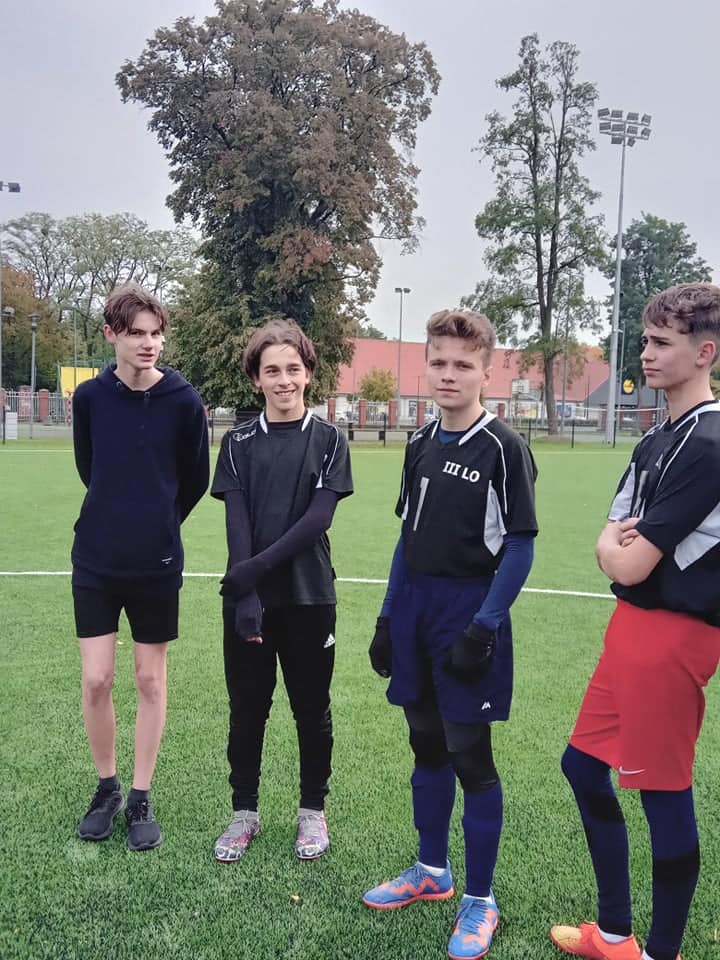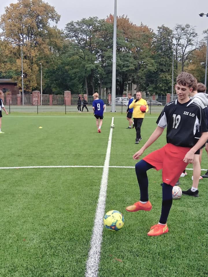 Zakończyliśmy piłkarskie zmagania o tytuł Mistrza Szczecina w ramach Rozgrywek Szkół Ponadpodstawowych. Reprezentanci klas: 1d, 1e, 1f, 2b, 2c, 4b wzięli udział w wymagającym, a zarazem emocjonującym Turnieju Piłki Nożnej chłopców, do którego zgłosiło się aż 20 drużyn z całego miasta. Uczniowie III LO rozegrali łącznie cztery mecze grupowe w systemie "każdy z każdym": LO IX, ZS 2, LO XVIII oraz TE. Szczególną uwagę należy zwrócić na bardzo wysoki poziom tegorocznych rozgrywek. W rozegranych meczach padało wiele bramek, nie tylko z akcji, ale również ze stałych fragmentów gry. Na brawa zasługują wszyscy zawodnicy naszej szkoły, a w szczególności pierwszoklasiści, którzy mieli okazję pierwszy raz reprezentować barwy III LO. Najlepszym strzelcem drużyny "Trójkowiczów" został Miłosz Rój, który zaliczył 3 trafienia w dwóch spotkaniach przy asystach Wojciecha Szycha i Sebastiana Brzezickiego. Gratulujemy udanych występów!